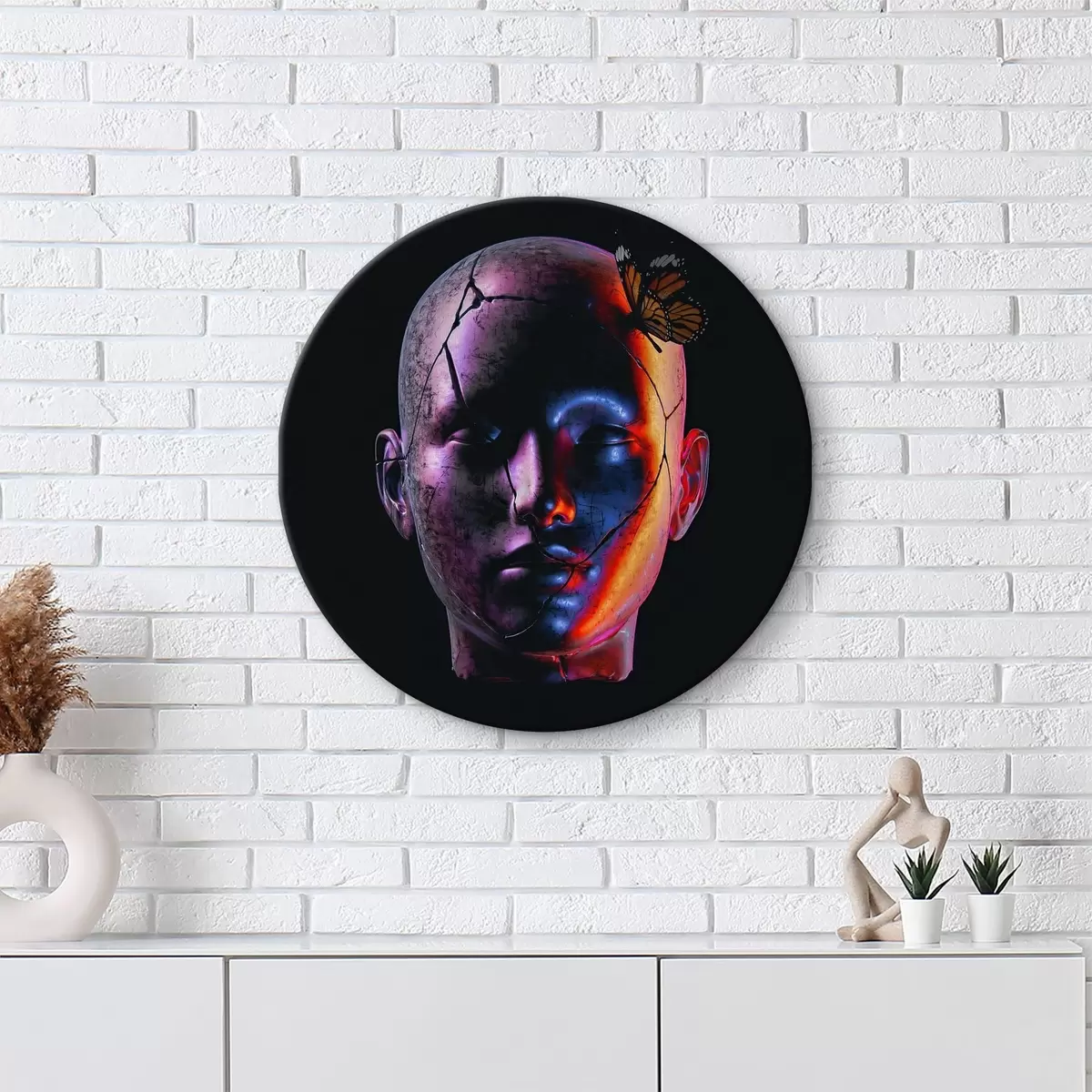 Tableaux rondes Un visage coloré divisé par l'obscurité Nr r37289