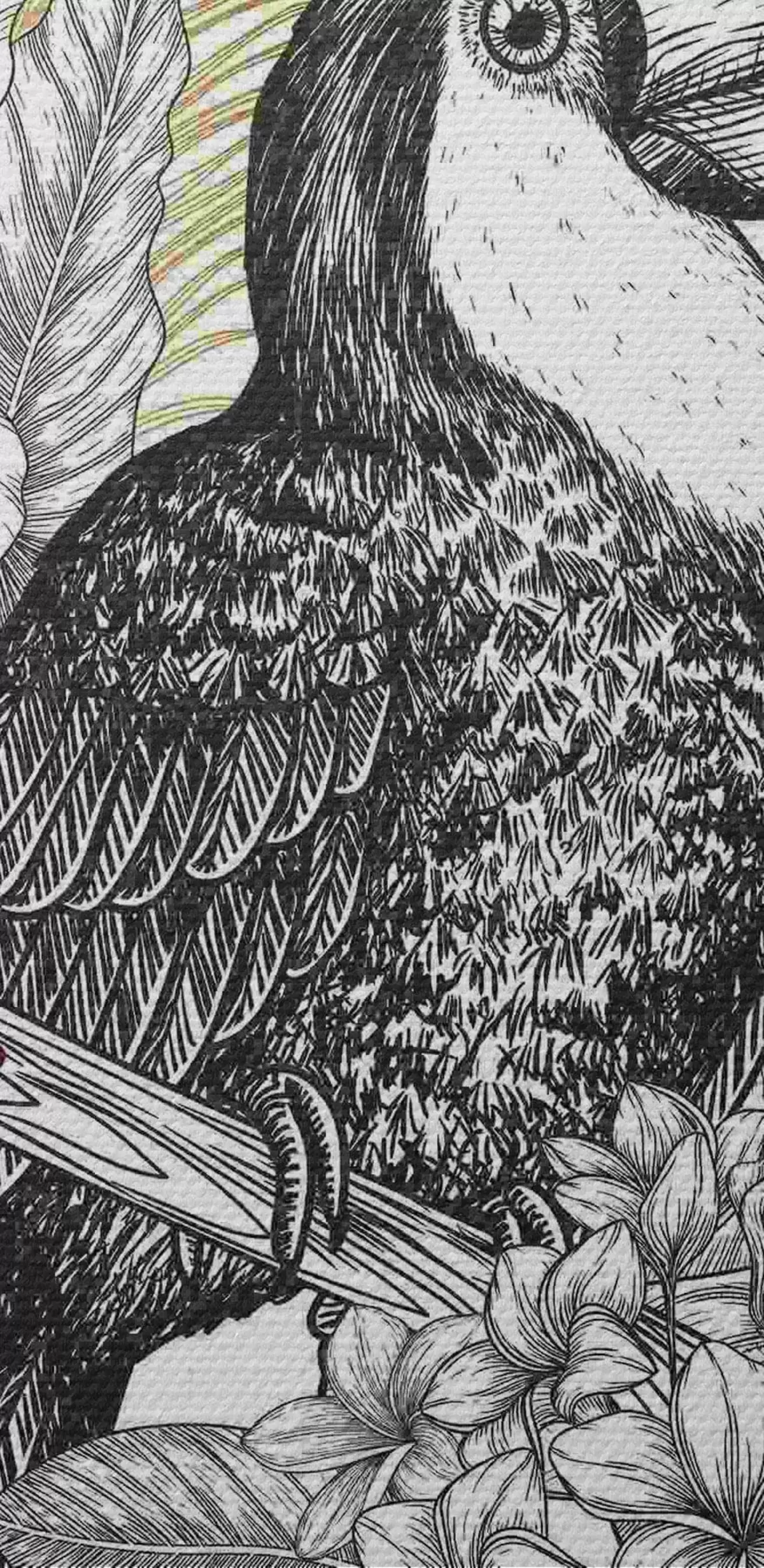 Tableaux rondes Toucan avec feuilles et fleurs Nr r37303