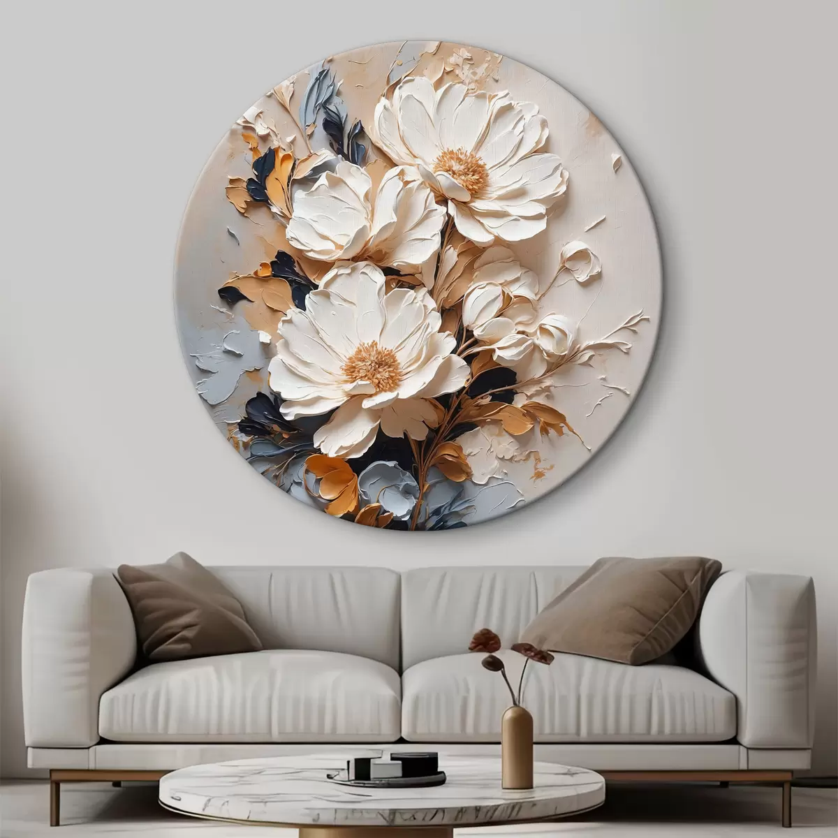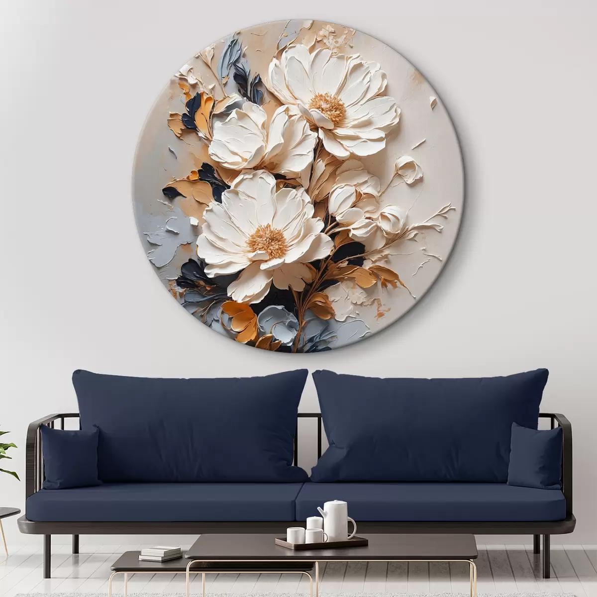 Tableaux rondes Fleurs blanches à l'huile r37327