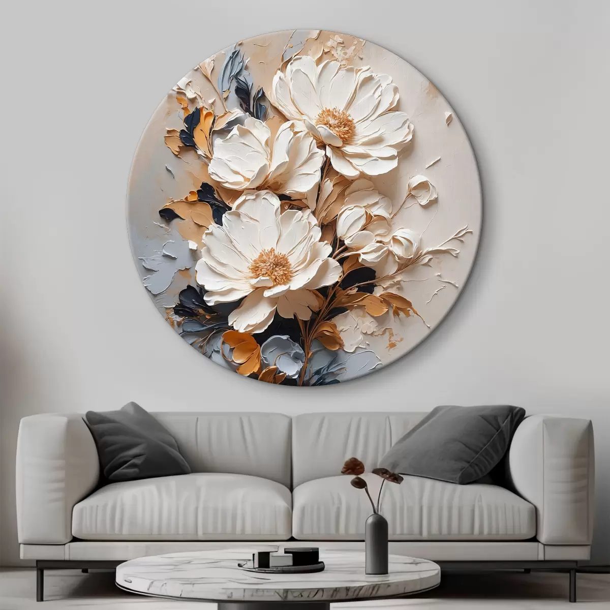 Tableaux rondes Fleurs blanches à l'huile Nr r37327
