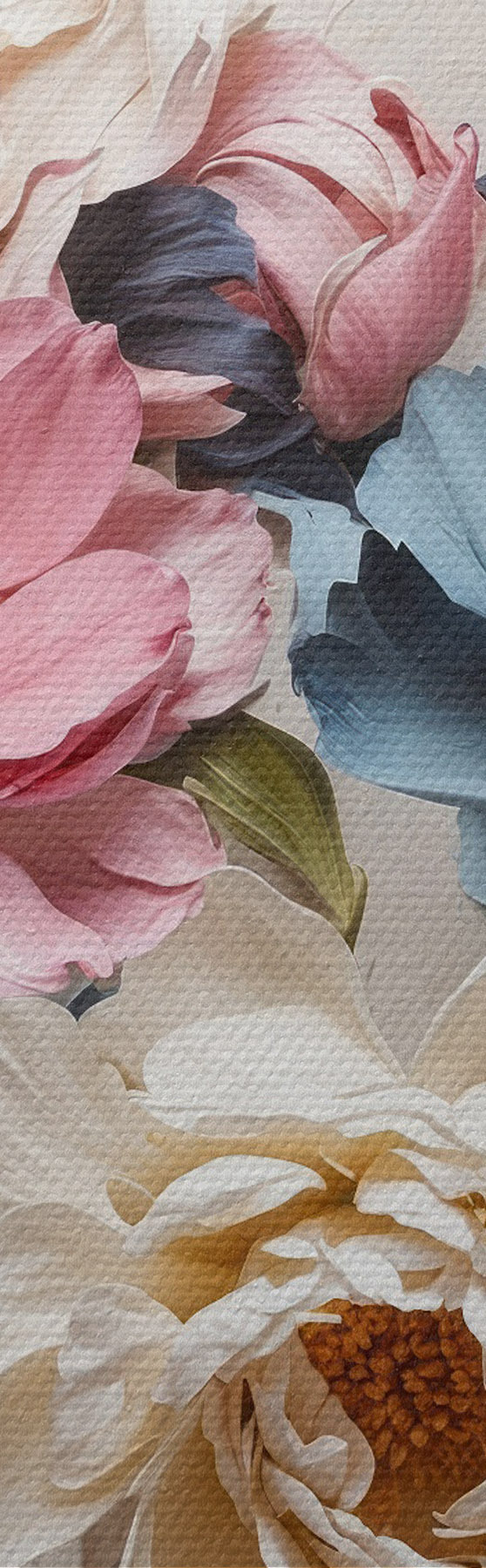 Trois types de matériaux peuvent être commandés : Economic Canvas - matériau dense et durable pour l'impression numérique, identique à la toile de peintre, surface imperméable, reproduction réaliste des détails, matériau à grain moyen. Premium Canvas - la texture ressemble à celle d'une toile de peintre (petits fils entrelacés). Reproduction douce et détaillée de l'image sur une surface mate. Eco-Premium - tissu 100 % coton de haute qualité. Grâce aux fibres naturelles de coton, le matériau est durable et résistant à l'usure. Excellente reproduction des couleurs et des détails.