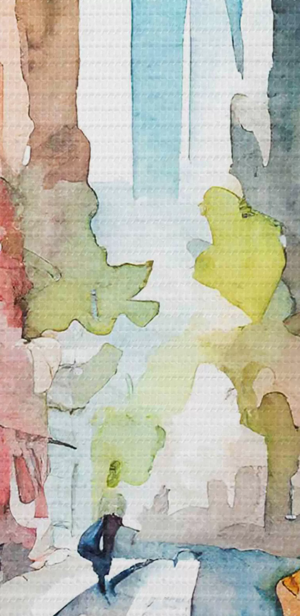 Tableaux rondes Une aquarelle représentant une rue avec des bâtiments et une grande tour en arrière-plan Nr r37346