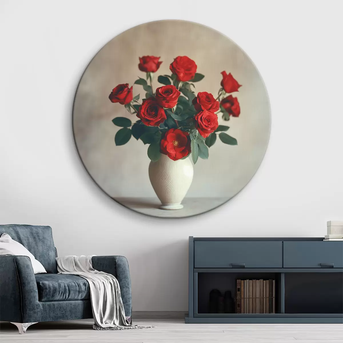 Tableaux rondes Vase avec roses rouges Nr r37376