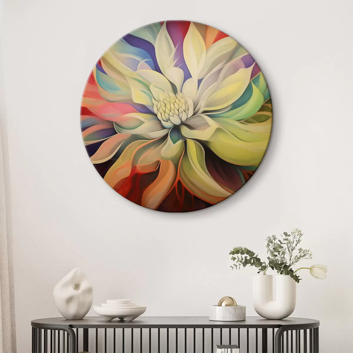 Tableaux rondes Fleur colorée aux pétales blancs Nr r37386