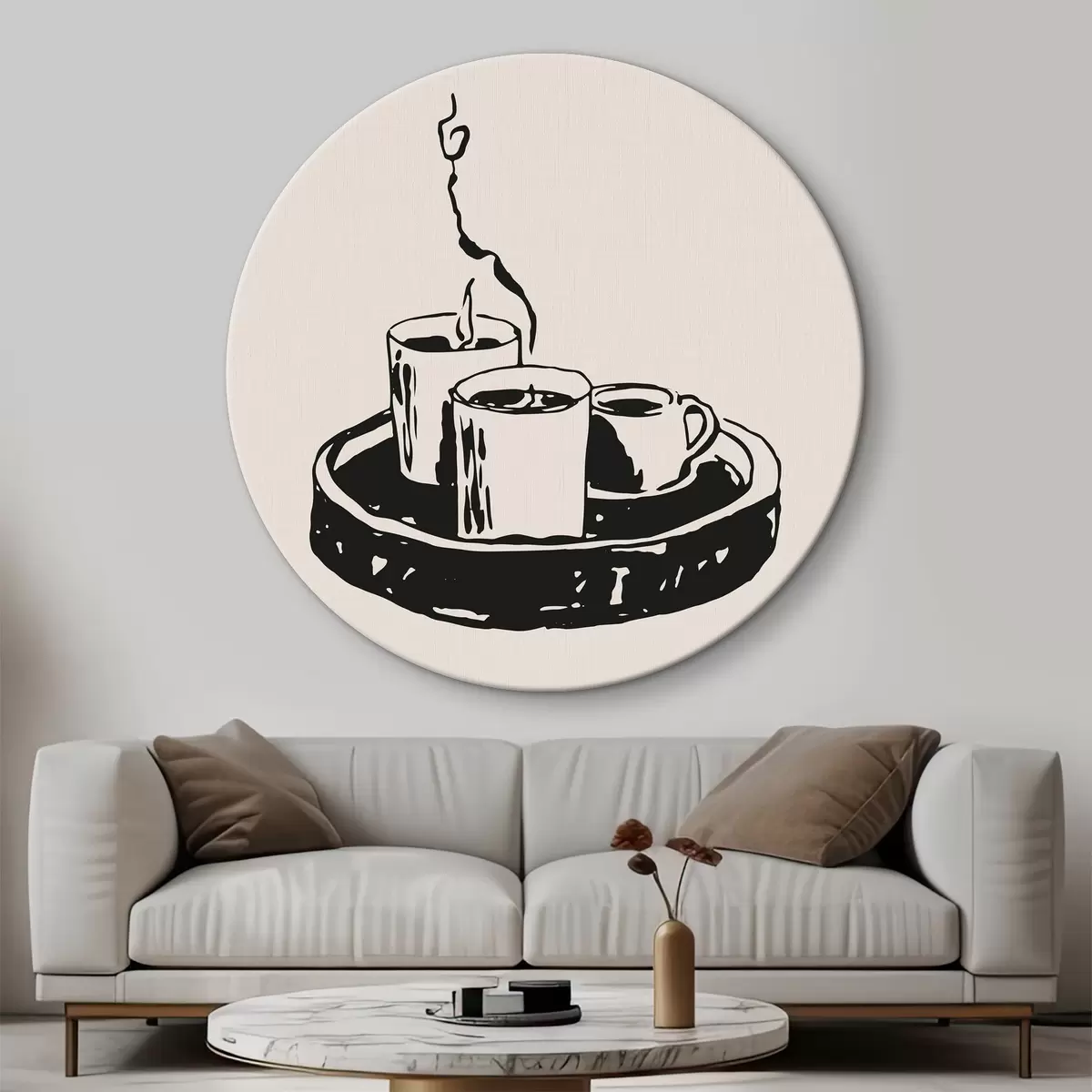 Tableaux rondes Dessin d'un plateau avec des tasses à café r37405