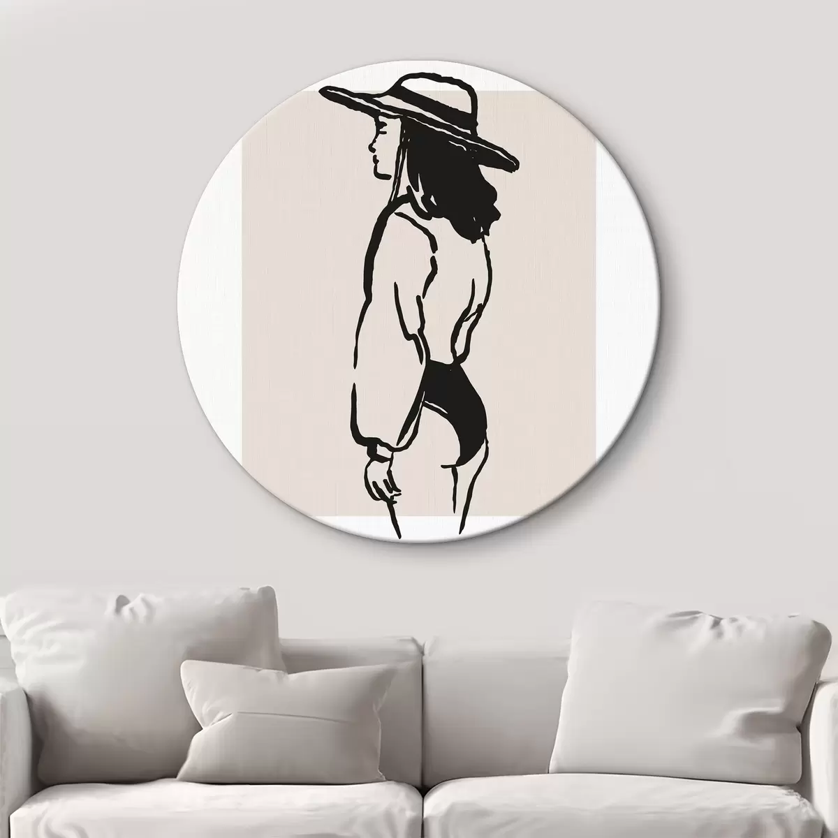 Tableaux rondes Fille avec un grand chapeau style aventure boho art moderne Nr r37412