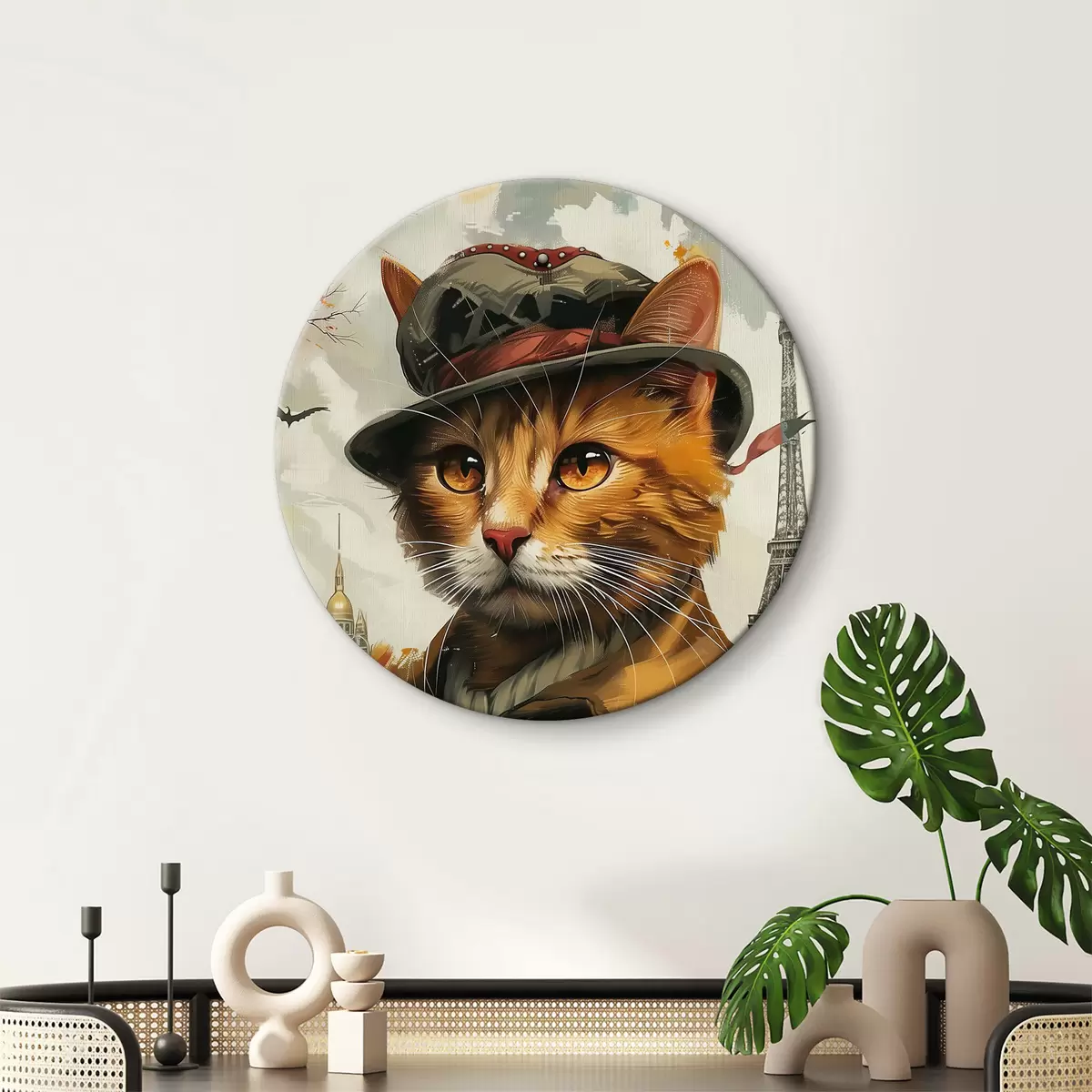 Tableaux rondes Chat avec chapeau et manteau Nr r37457