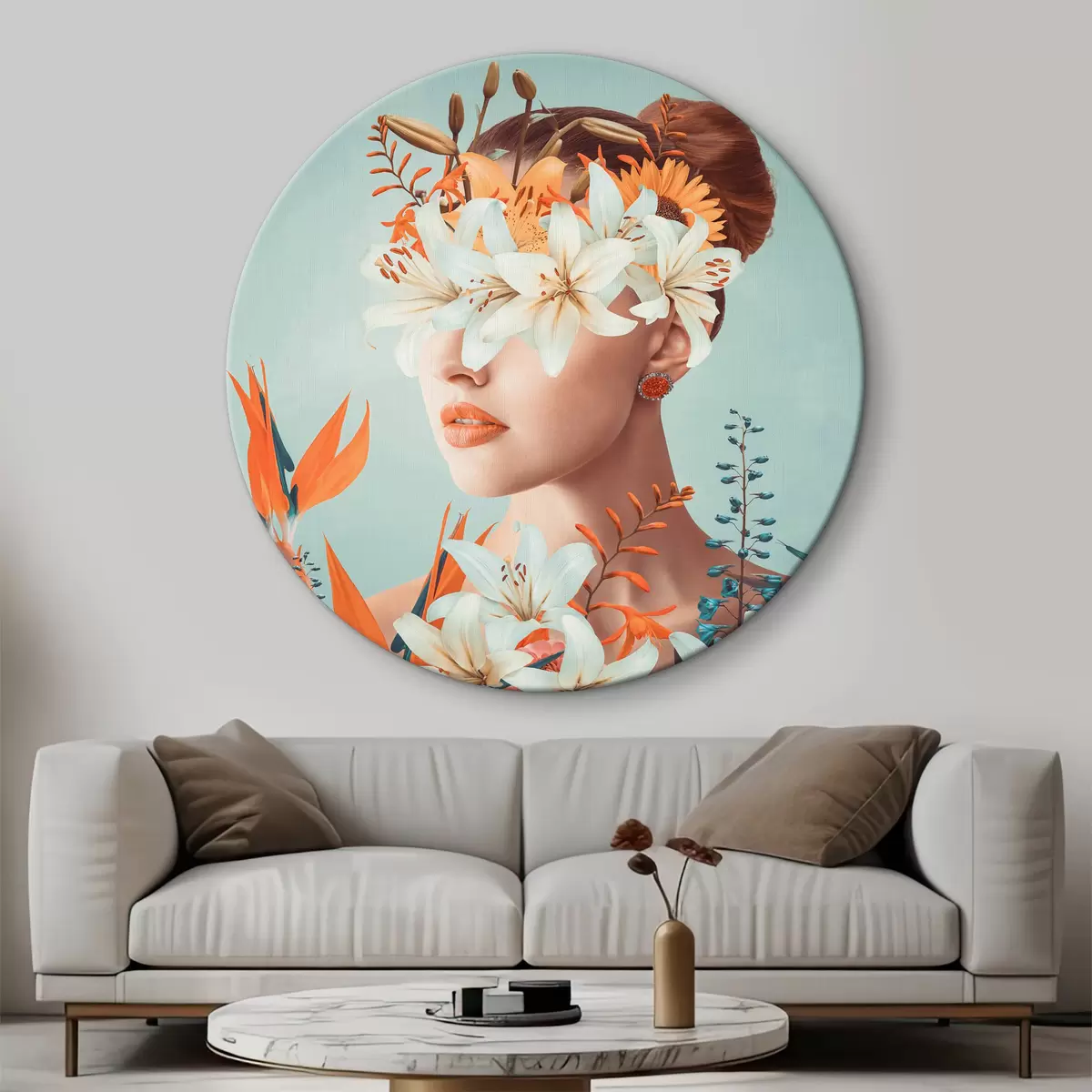Tableaux rondes Femme avec des fleurs autour des yeux Nr r37480