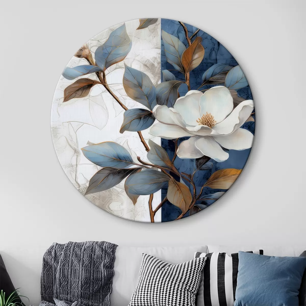 Tableaux rondes Fleurs sur fond bleu et blanc Nr r37541