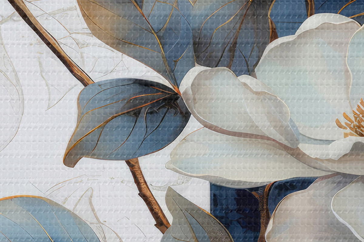 Tableaux rondes Fleurs sur fond bleu et blanc r37541