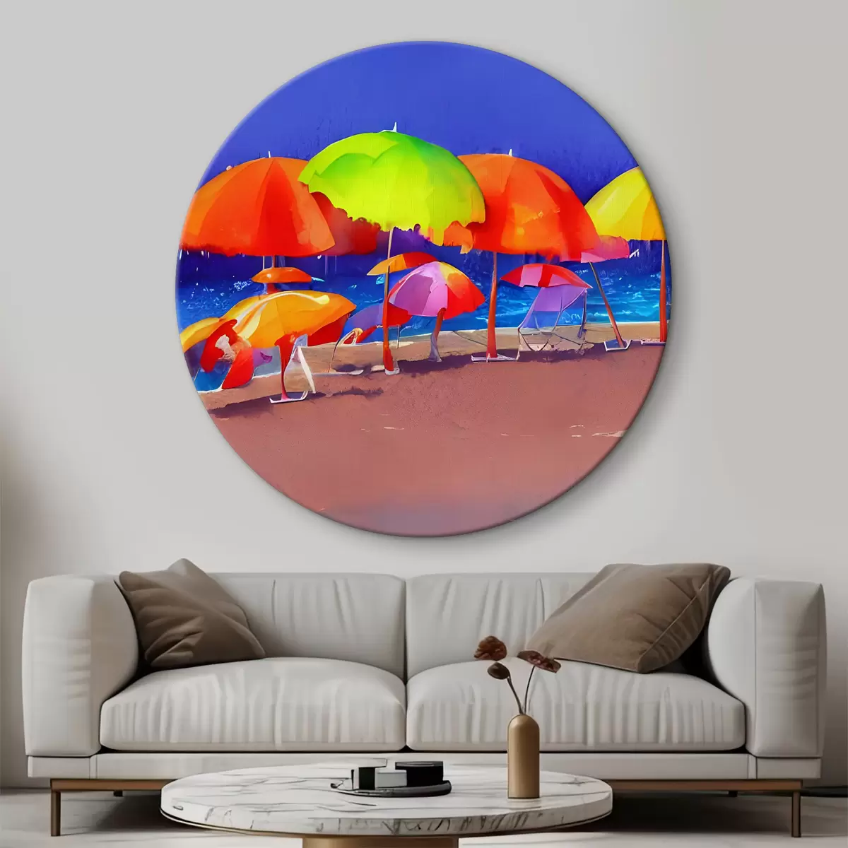 Tableaux rondes Groupe de parasols colorés sur la plage Nr r37626