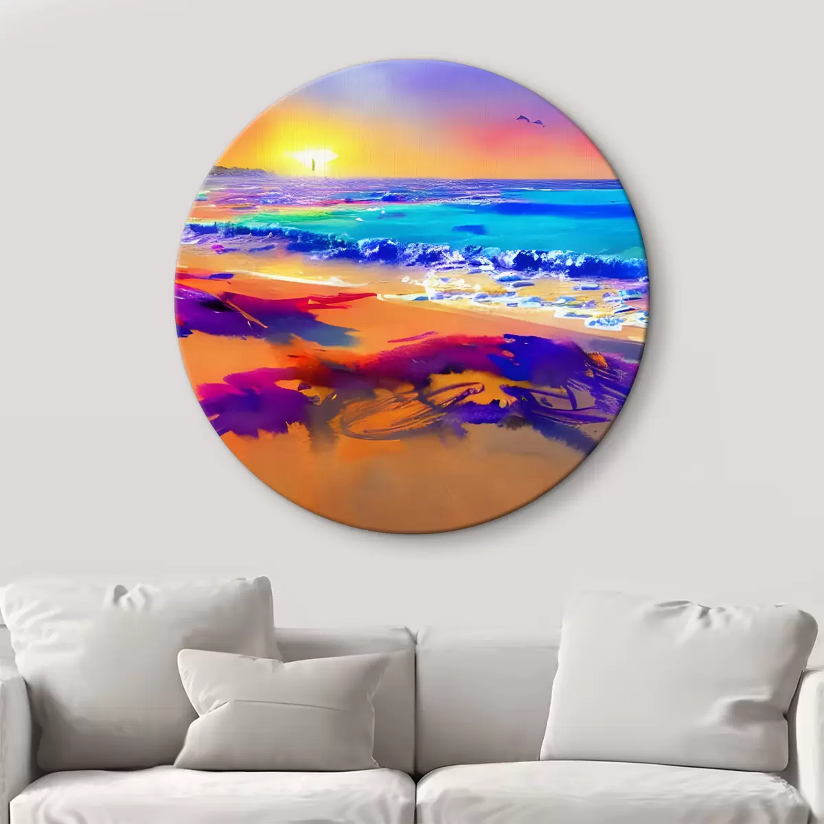 Tableaux rondes Aquarelle de bord de mer Nr r37627