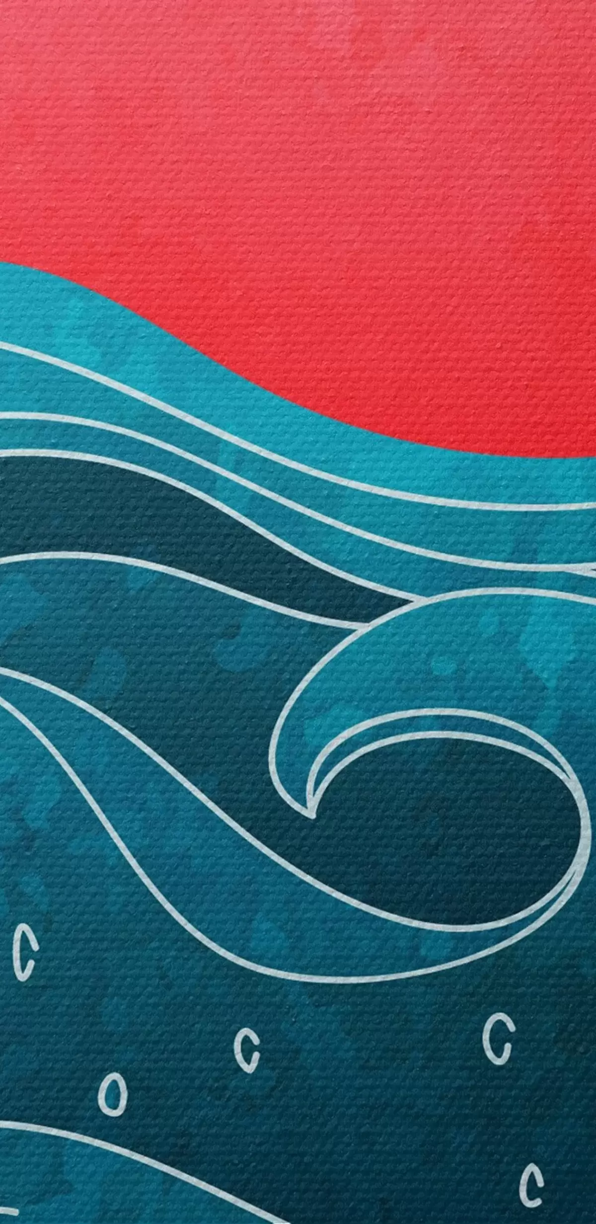 Tableaux rondes Eau avec vagues et soleil rouge r37640