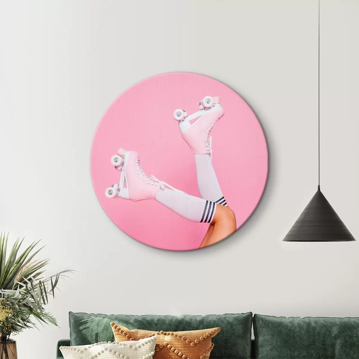 Tableaux rondes Patins à roulettes sur fond rose r37763