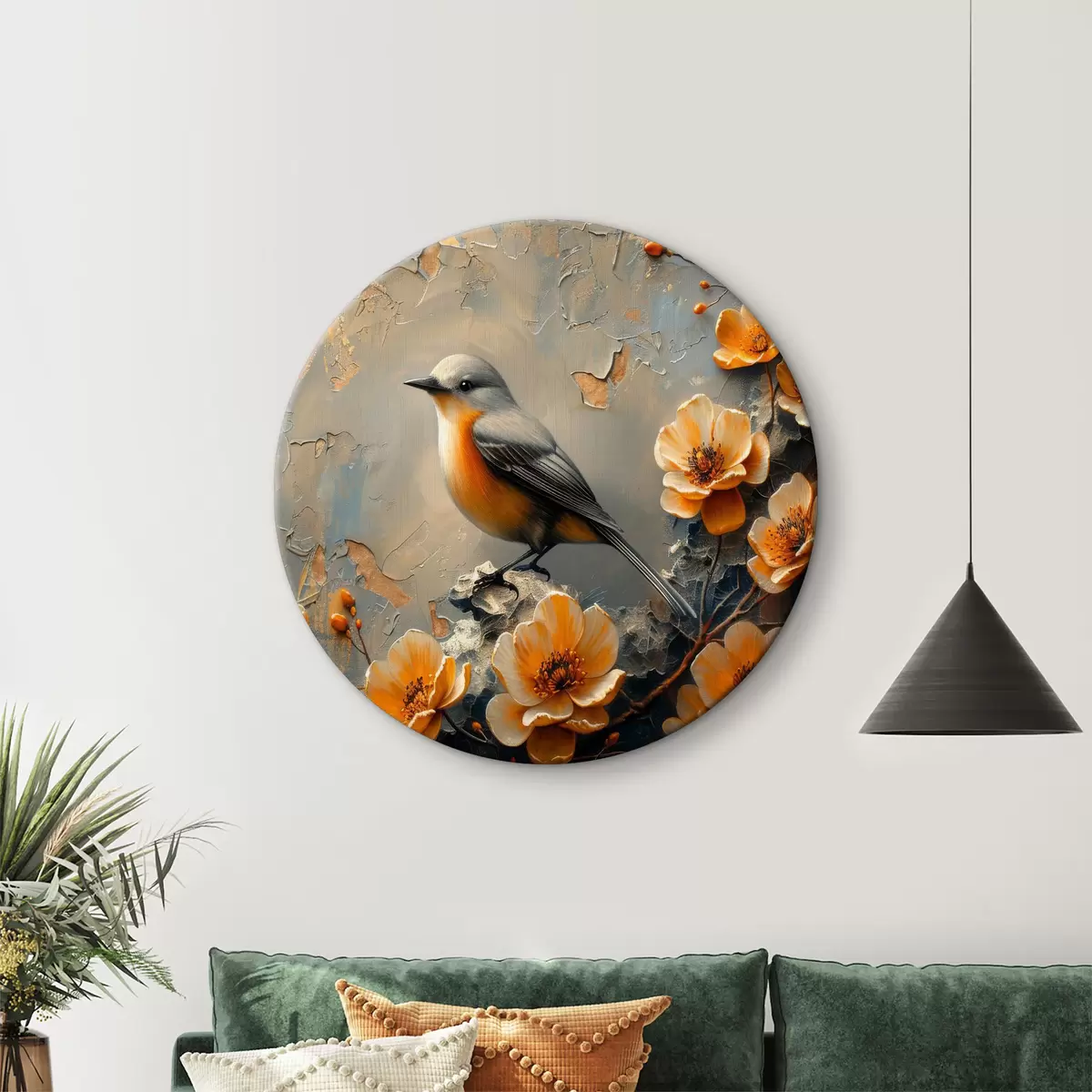 Tableaux rondes Oiseau sur une branche avec des fleurs Nr r37770