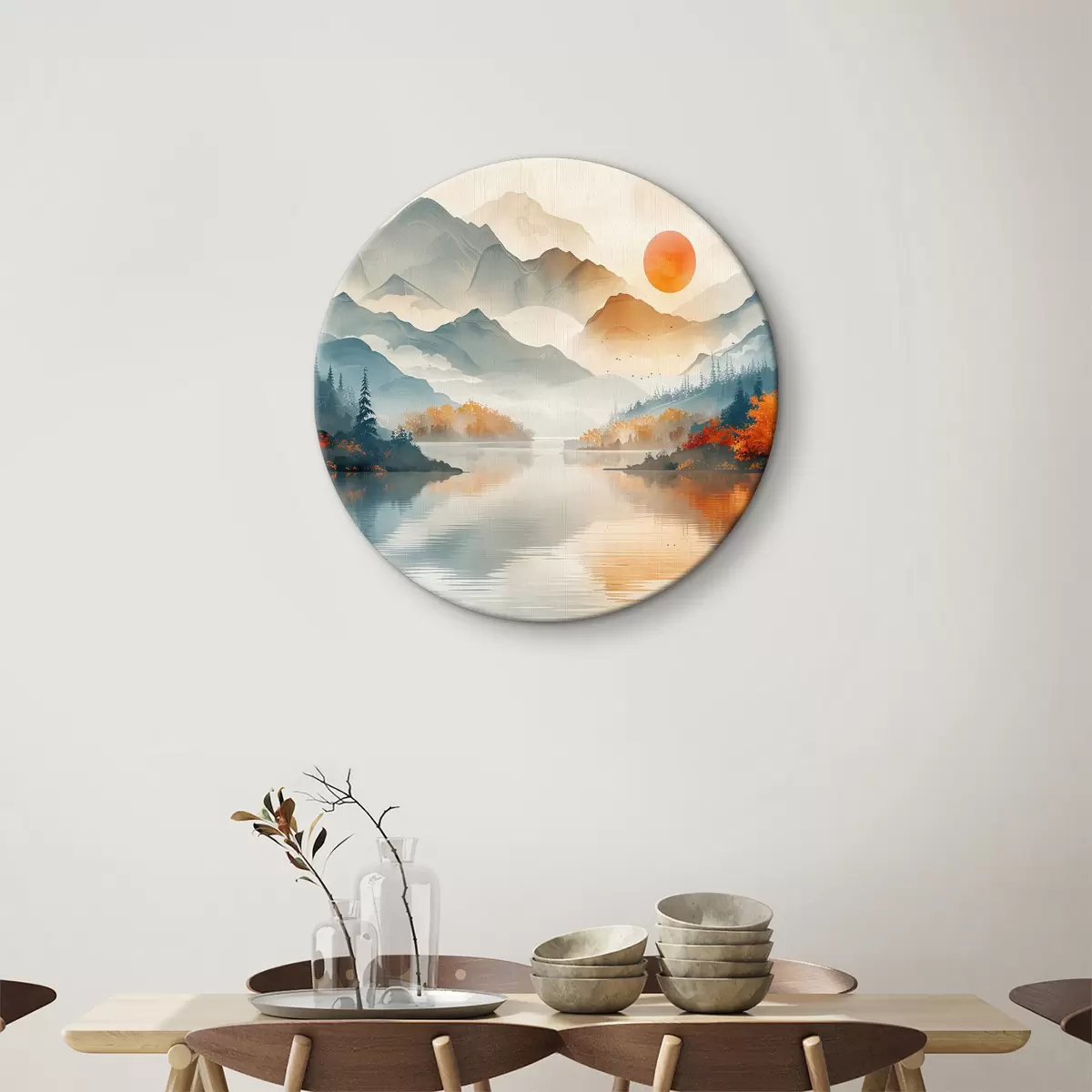 Tableaux rondes Paysage avec montagnes et eau Nr r37780
