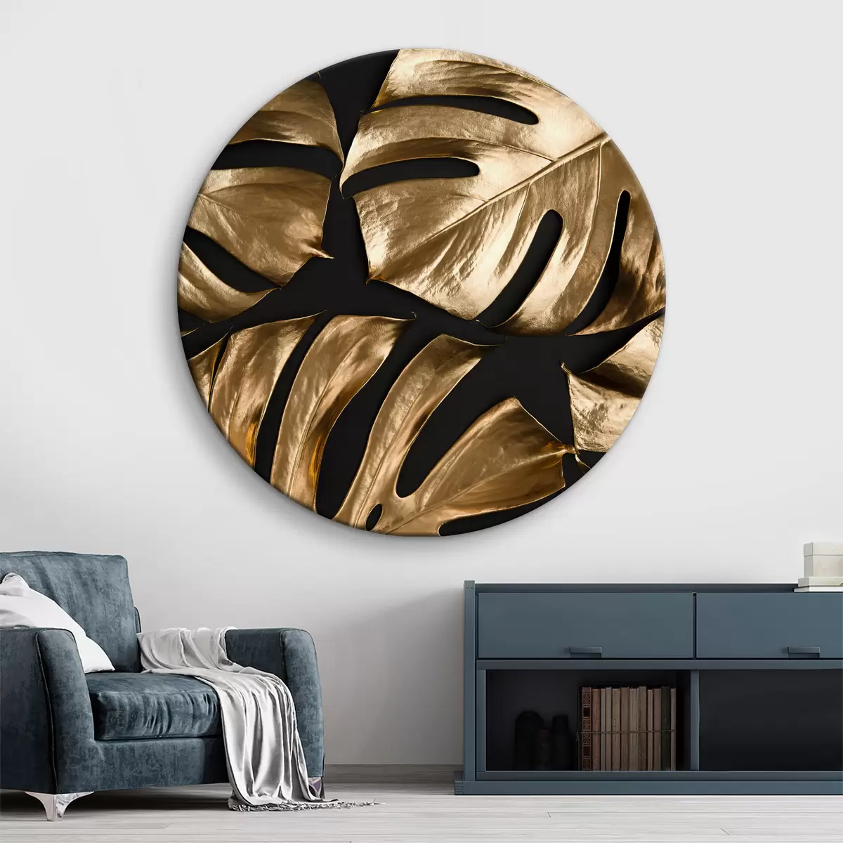 Tableaux rondes Feuilles d'or sur fond noir Nr r37782