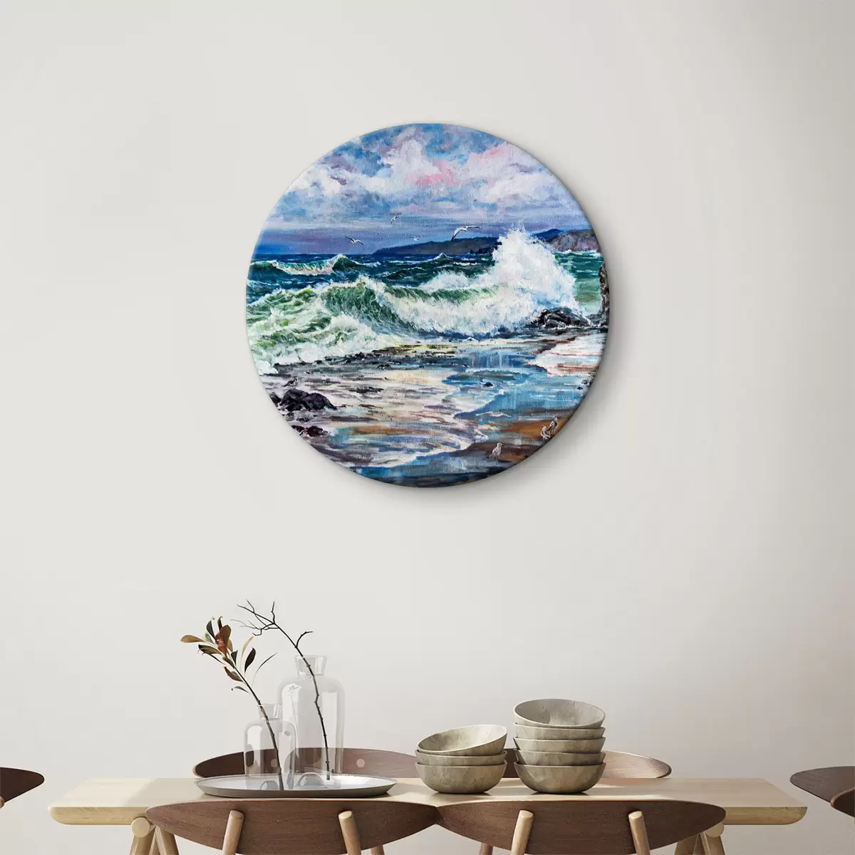 Tableaux rondes Image de vagues s'écrasant sur une plage Nr r37785
