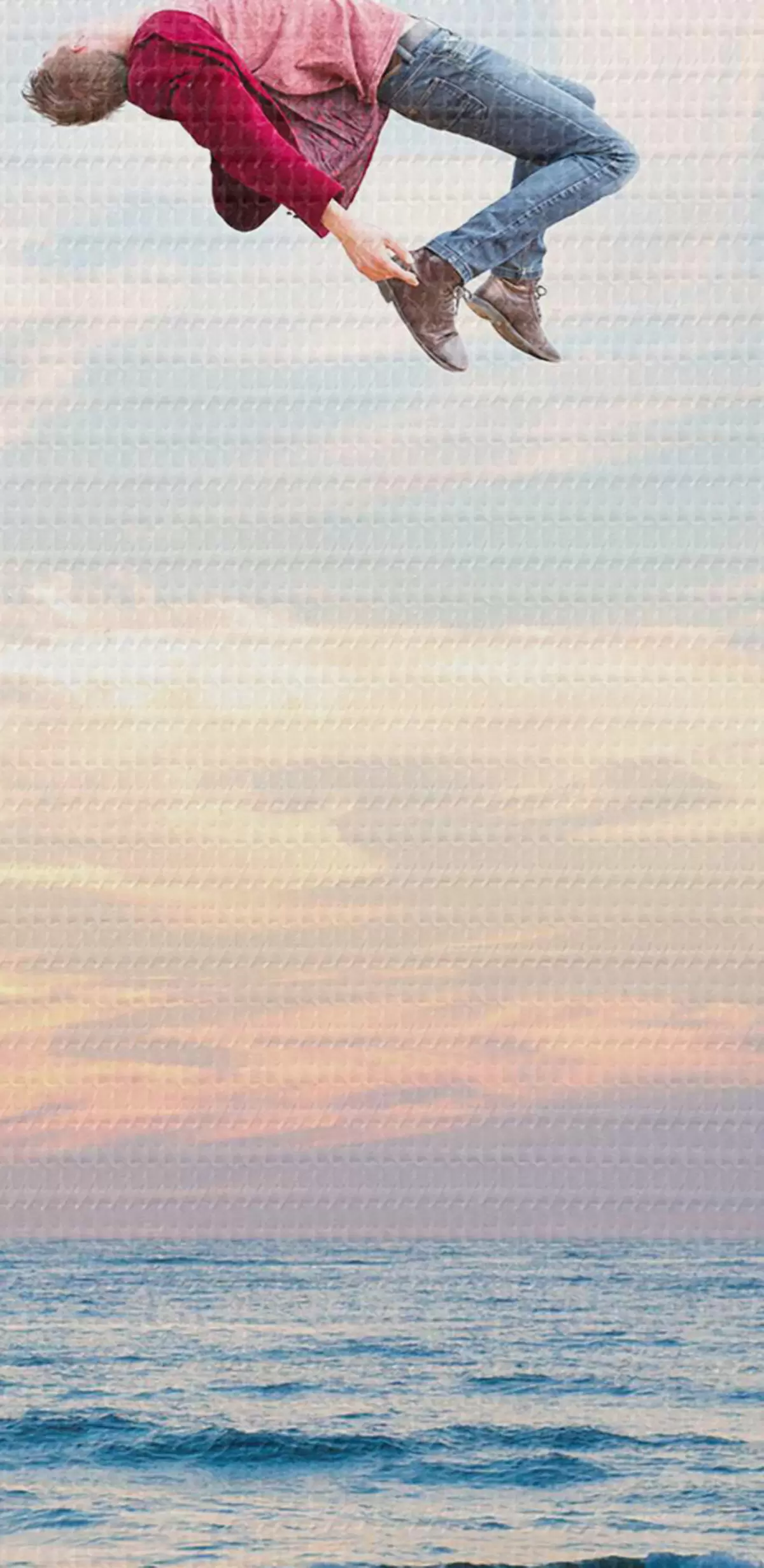 Tableaux rondes Un homme sautant en l'air au-dessus de l'eau Nr r37786