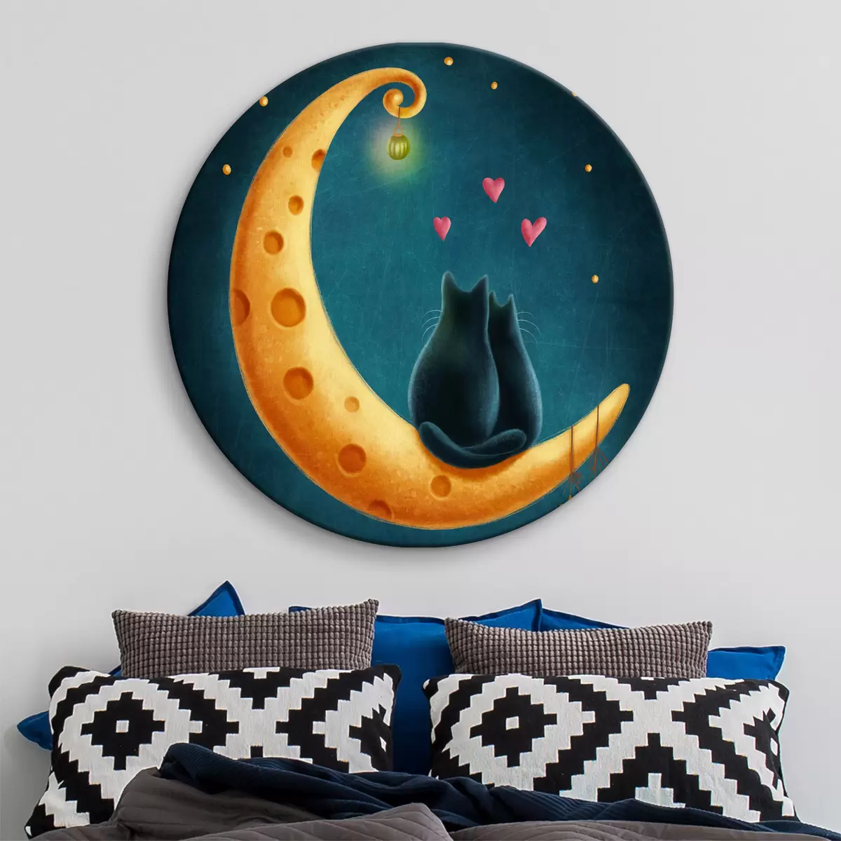 Tableaux rondes Chats amoureux au clair de lune Nr r37836