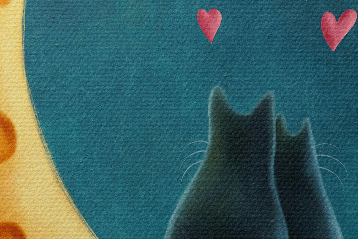 Tableaux rondes Chats amoureux au clair de lune r37836