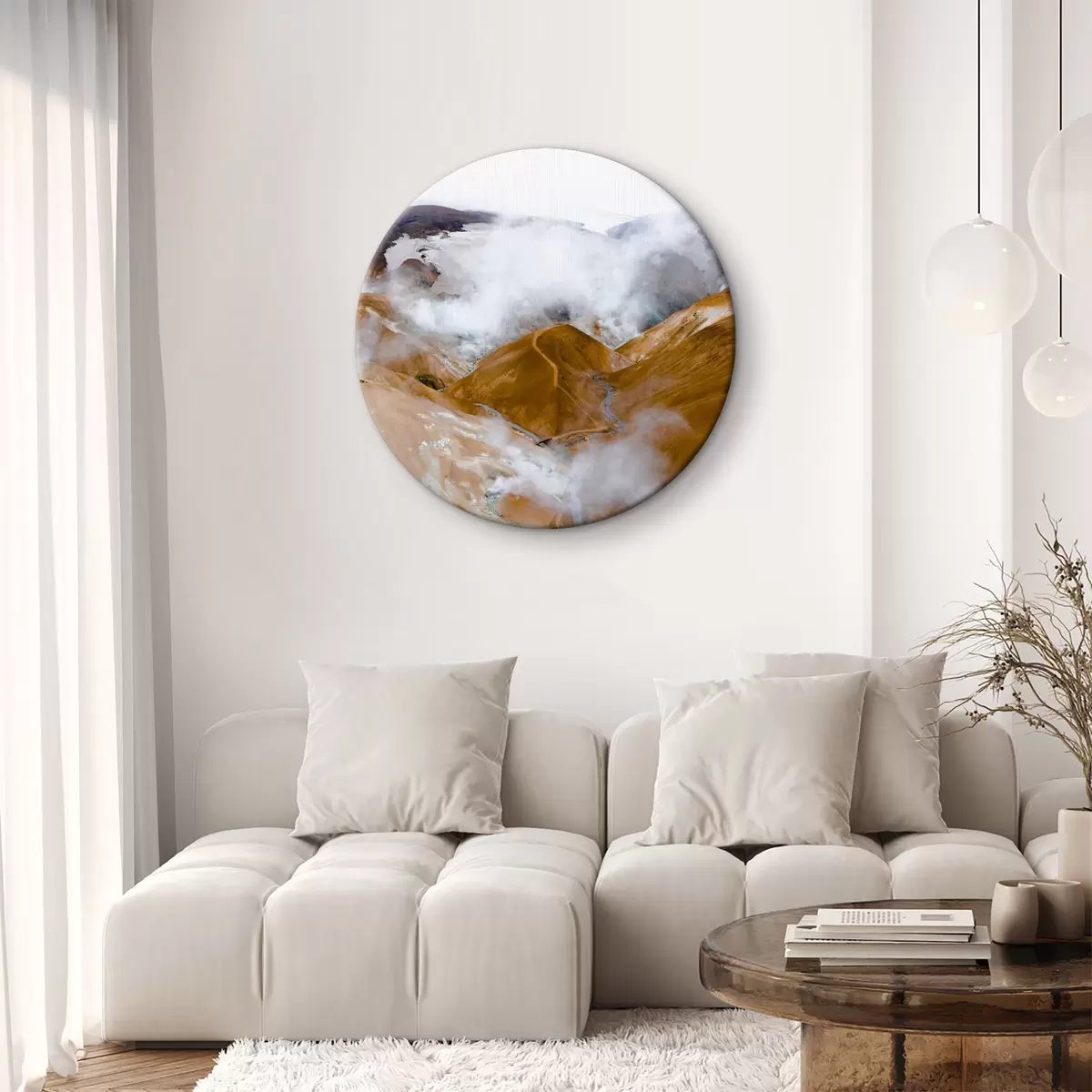 Tableaux rondes Montagnes brumeuses sous un ciel nuageux Nr r37890