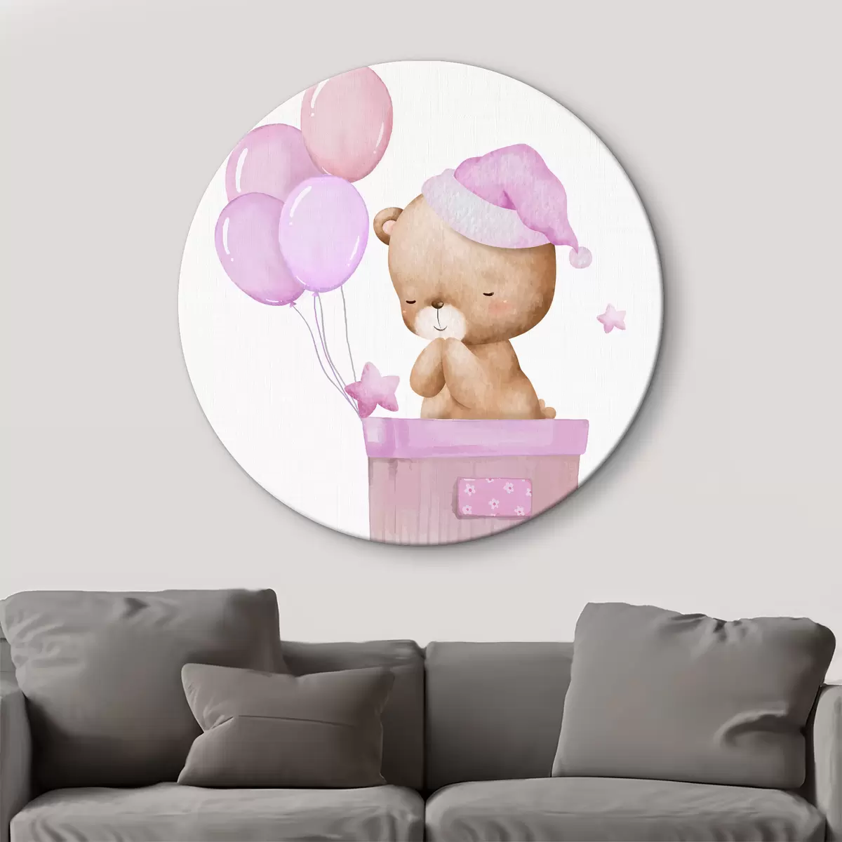 Tableaux rondes Ourson endormi avec des balles Nr r37918v2