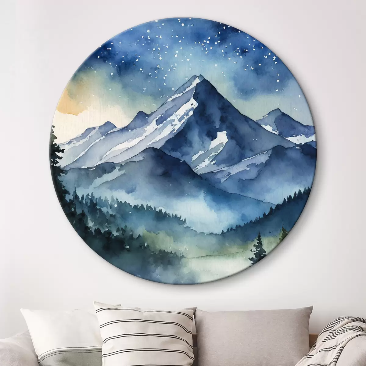 Tableaux rondes Des montagnes majestueuses sous un ciel étoilé Nr r37945