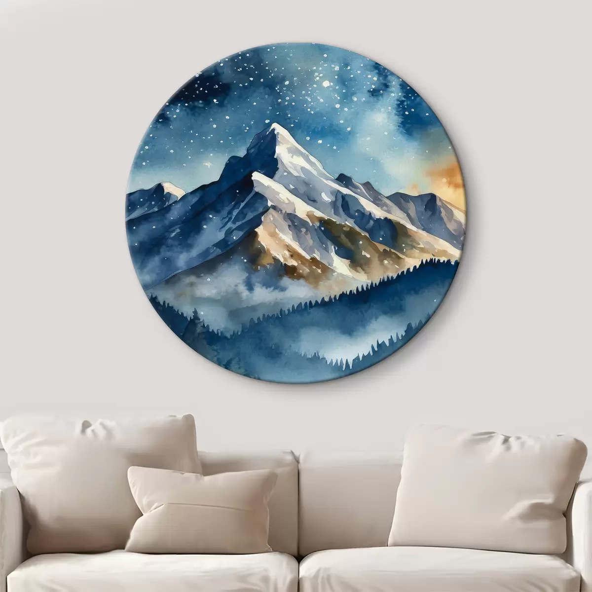 Tableaux rondes Des montagnes majestueuses sous un ciel étoilé Nr r37947