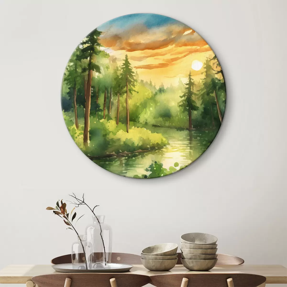 Tableaux rondes Forêt paisible près d'une rivière calme Nr r37950