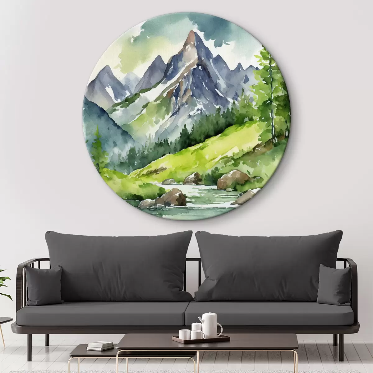 Tableaux rondes Des montagnes majestueuses sous un ciel doux Nr r37958