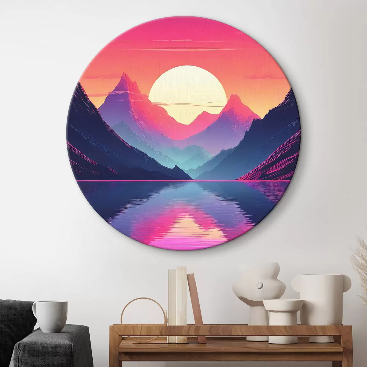 Tableaux rondes Montagnes majestueuses au coucher du soleil Nr r38002