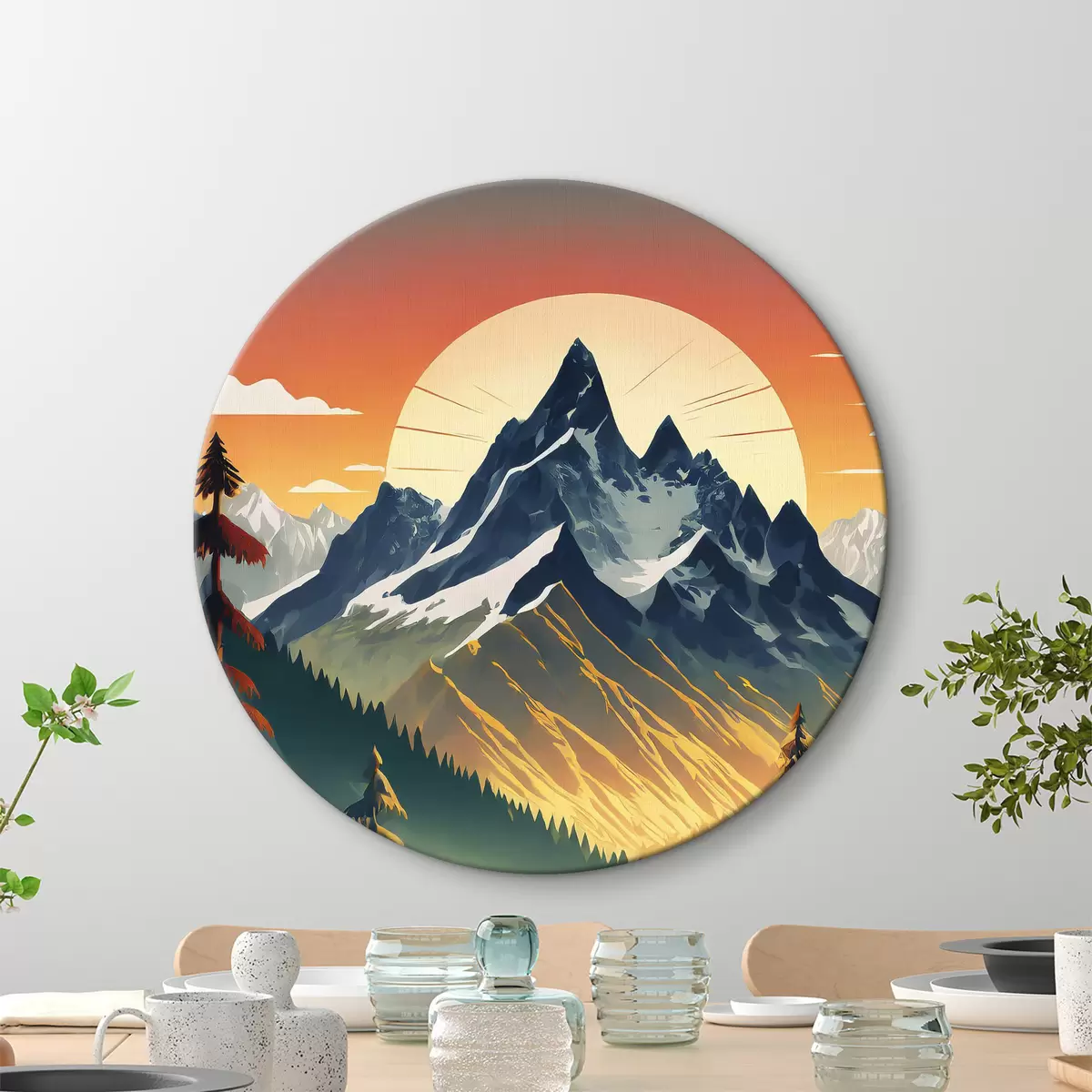 Tableaux rondes Des montagnes paisibles sous un ciel coloré Nr r38004