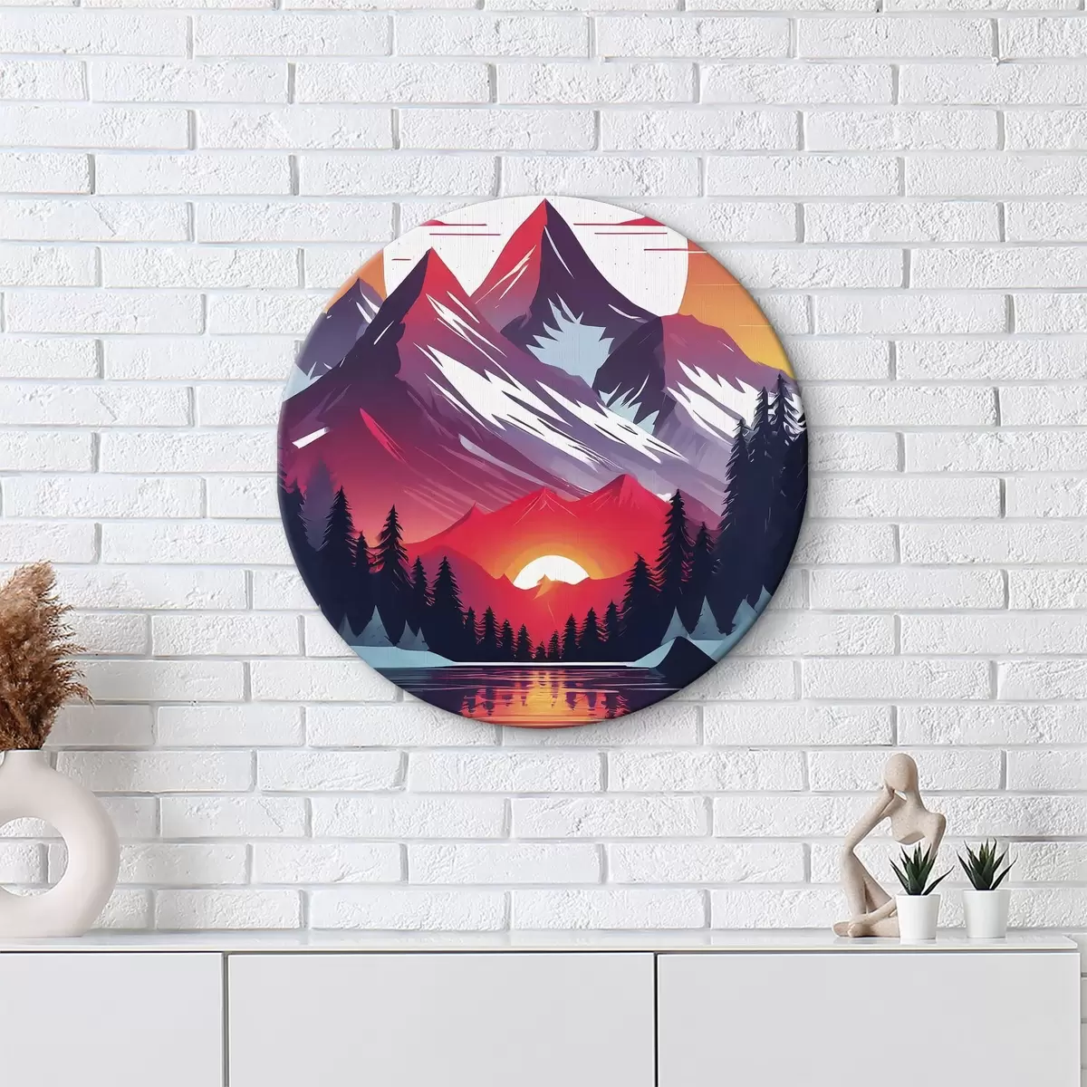 Tableaux rondes Des montagnes majestueuses sous un ciel lumineux Nr r38005