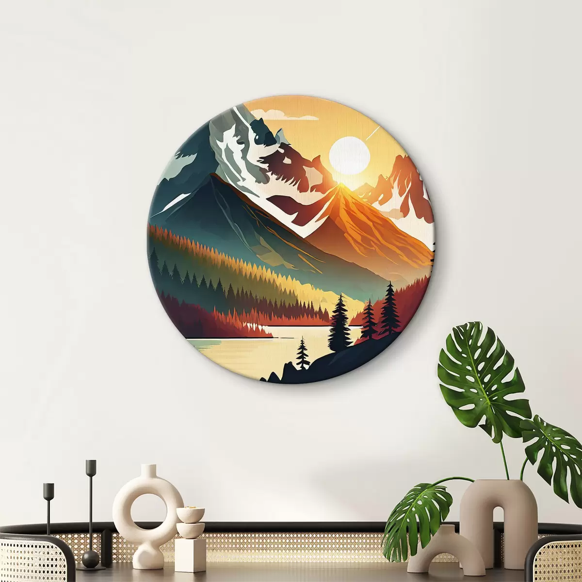 Tableaux rondes Des montagnes majestueuses sous un ciel lumineux Nr r38006