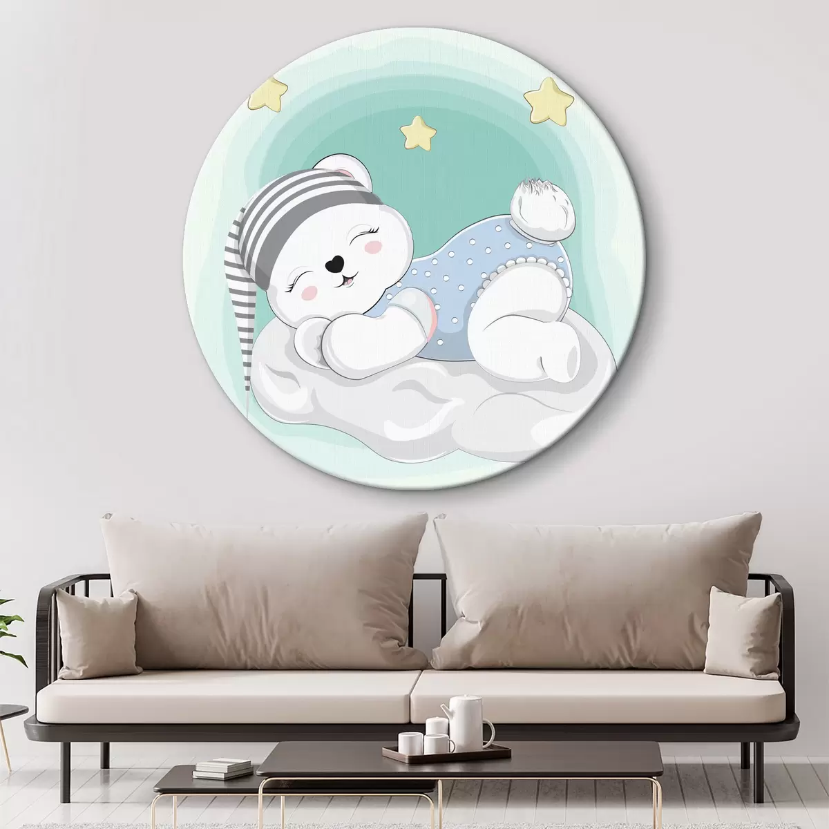 Tableaux rondes Un ours magique rêve sur un nuage Nr r38040