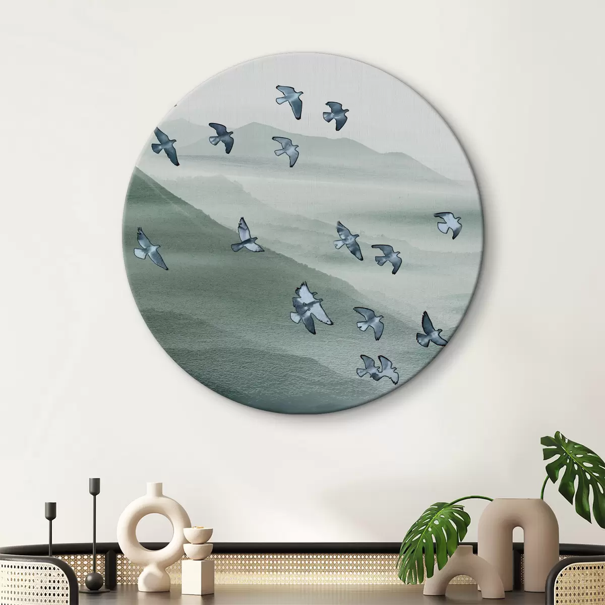 Tableaux rondes Une volée d'oiseaux survolant les montagnes Nr r38069