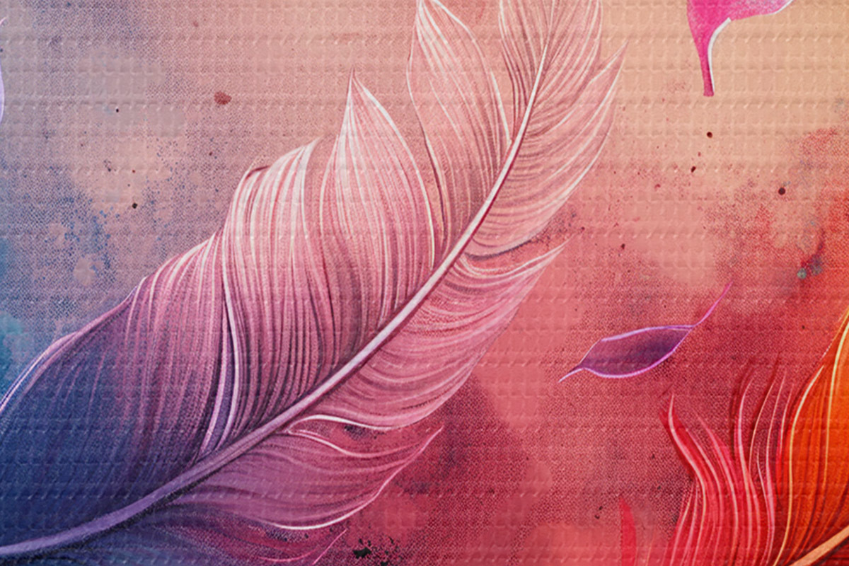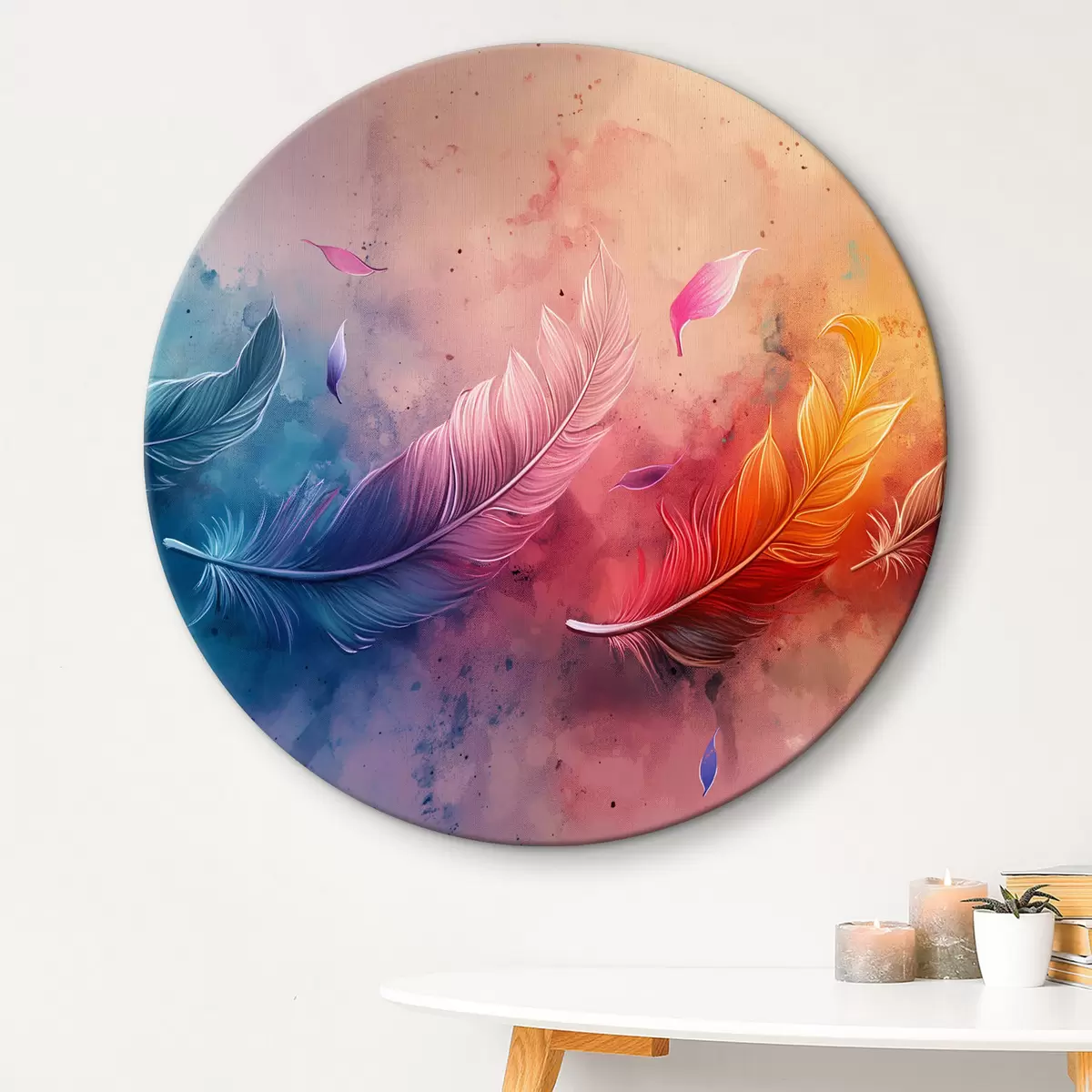 Tableaux rondes Plumes colorées sur fond aquarelle Nr r38095