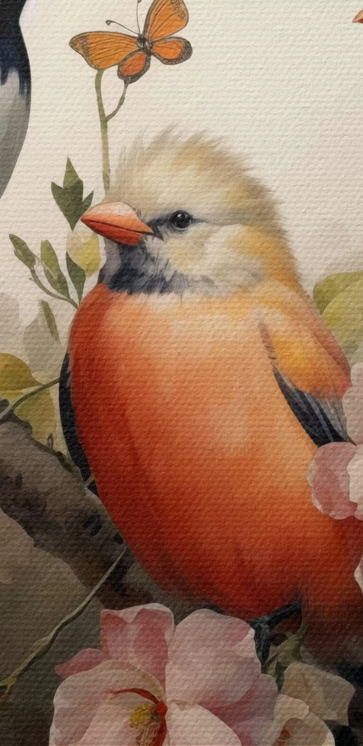Tableaux rondes Groupe d'oiseaux sur une branche avec des fleurs r38103