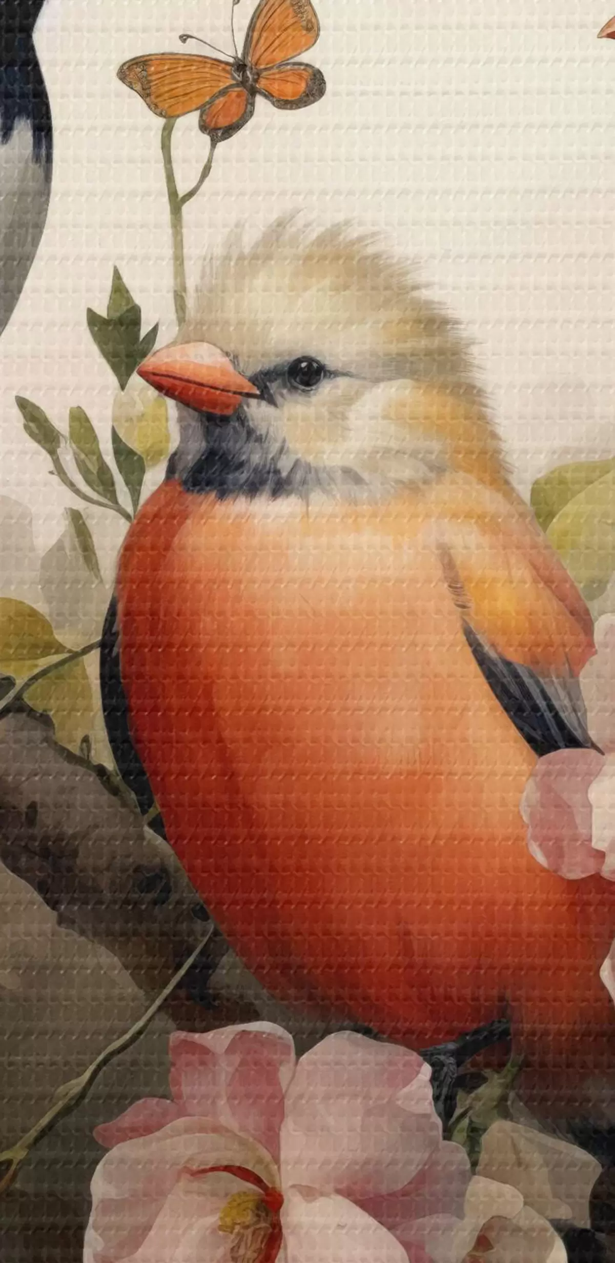 Tableaux rondes Groupe d'oiseaux sur une branche avec des fleurs Nr r38103