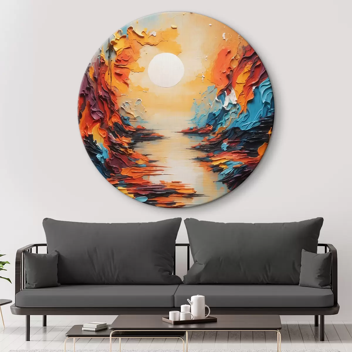 Tableaux rondes Rivière au coucher du soleil dans l'huile Nr r38111