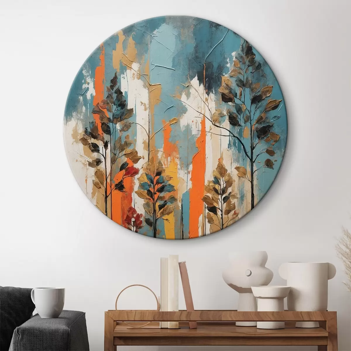 Tableaux rondes Arbres dans l'huile sur fond abstrait r38115