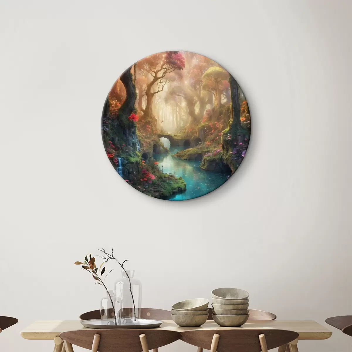 Tableaux rondes Une rivière qui coule dans la forêt Nr r38121