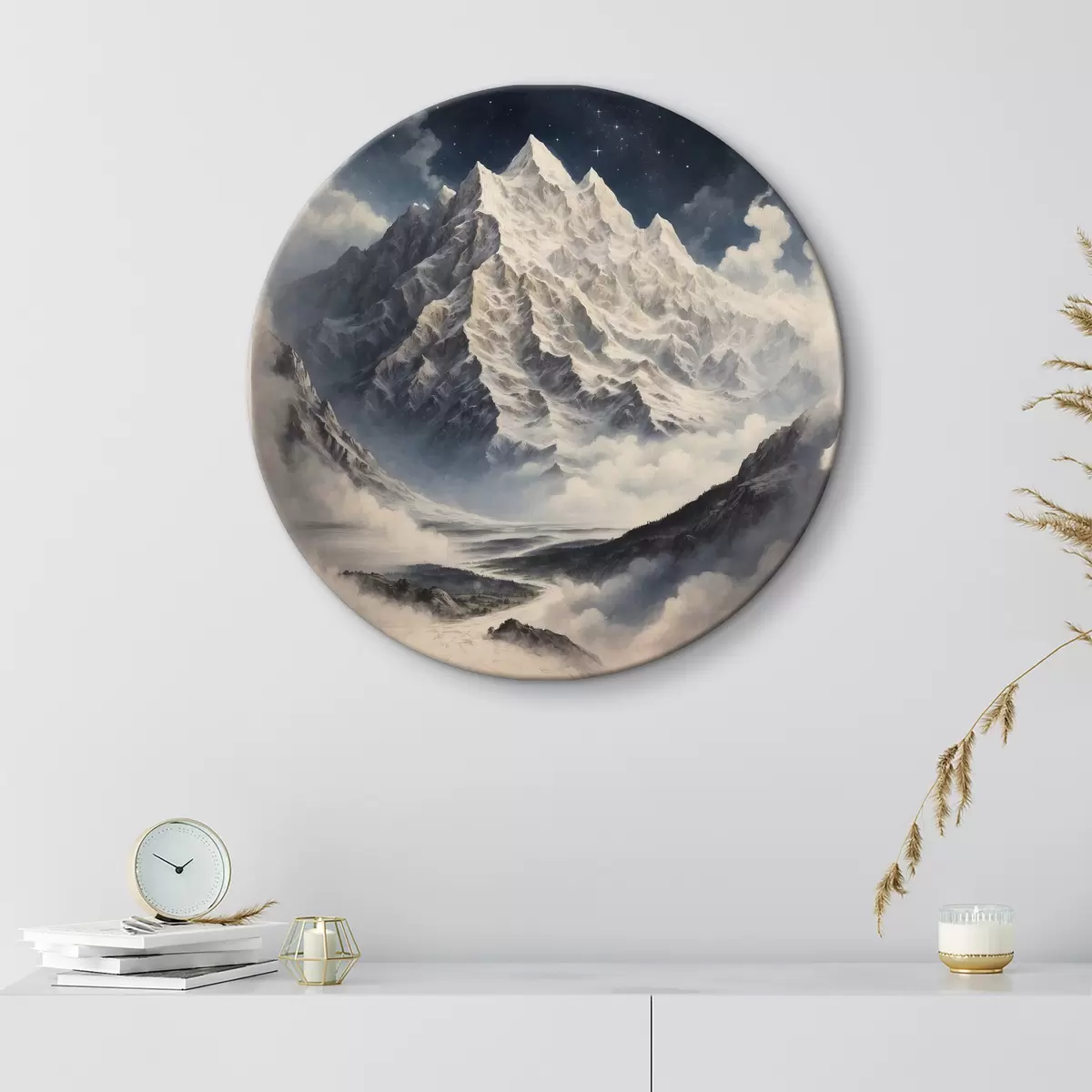 Tableaux rondes Montagne avec nuages et étoiles Nr r38127