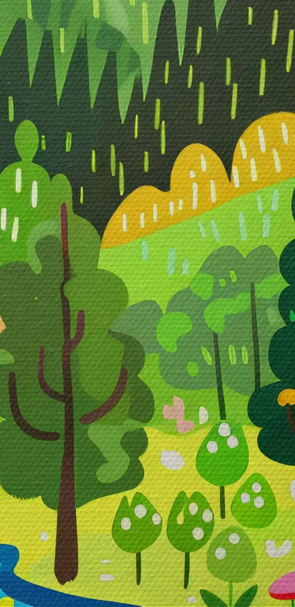 Tableaux rondes Paysage de dessin animé avec des arbres et des fleurs Nr r38140
