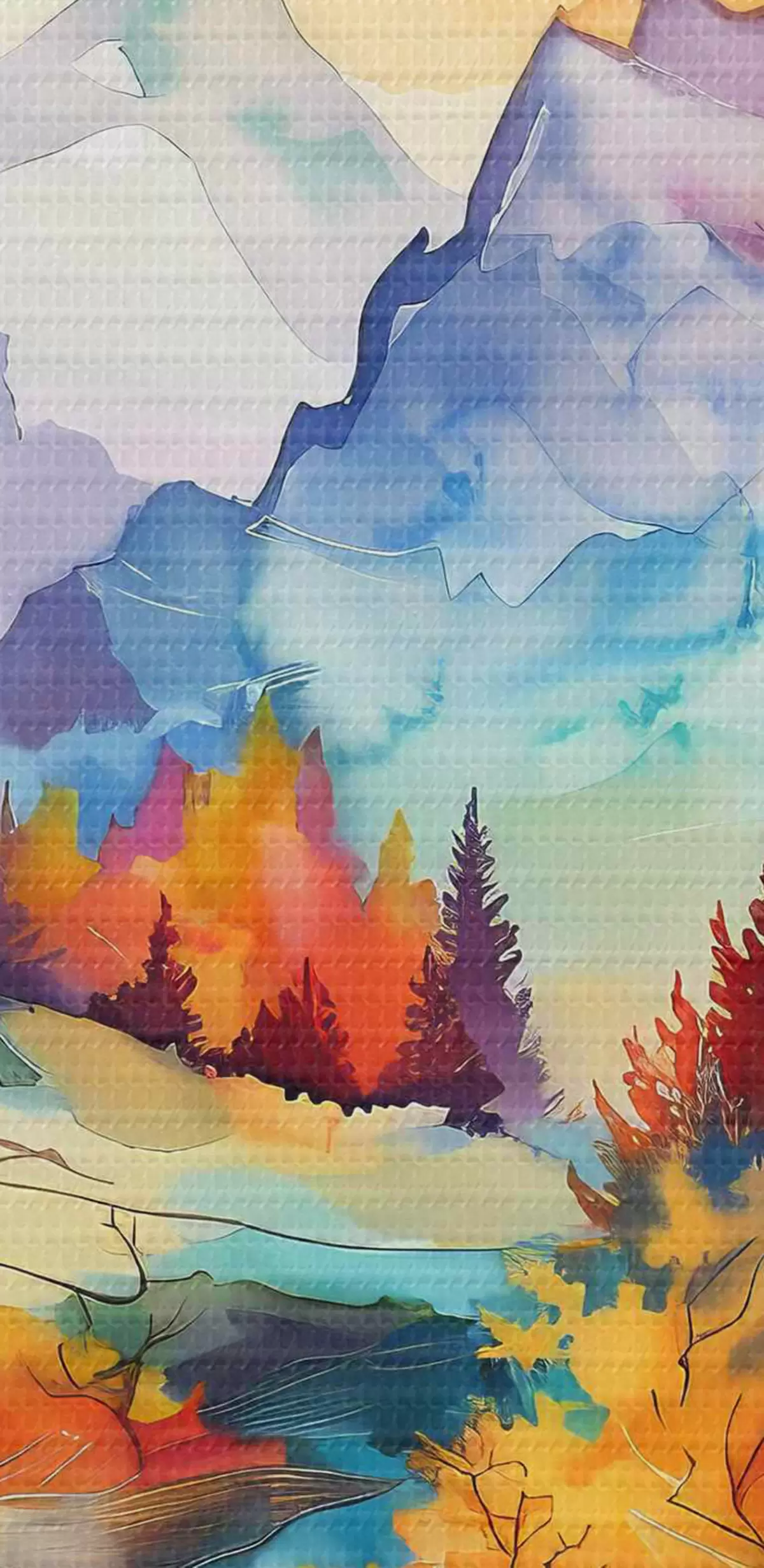 Tableaux rondes Paysage de montagne coloré avec arbres et rivière r38145