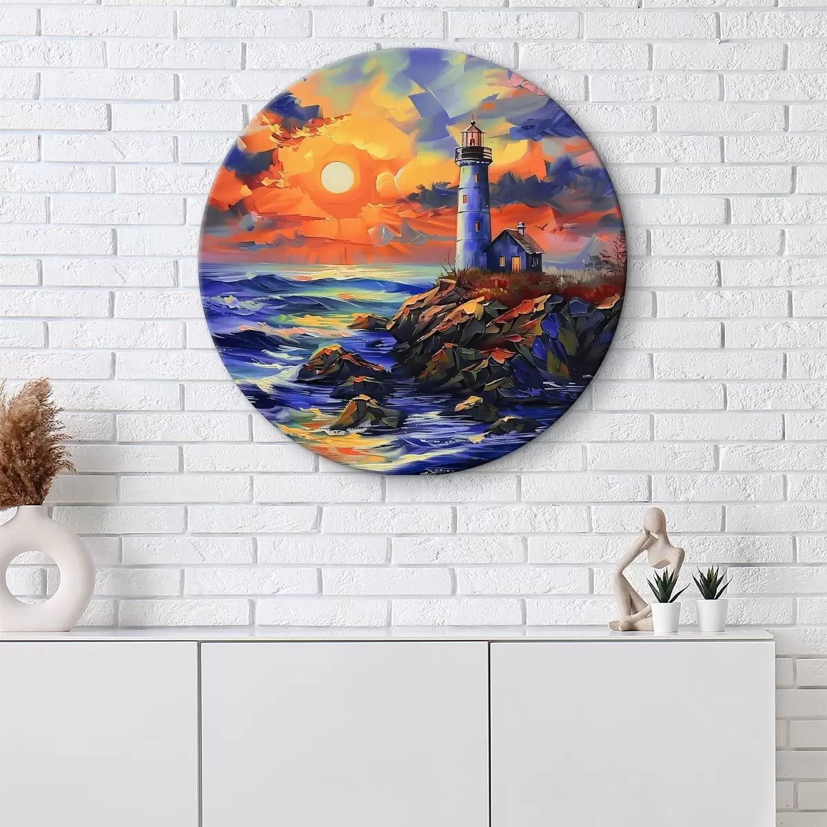 Tableaux rondes Phare au coucher du soleil sur la côte r38150