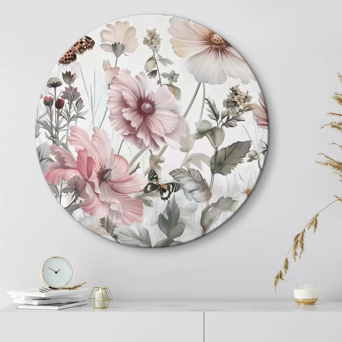 Tableaux rondes Gros plan sur des fleurs et des papillons r38153