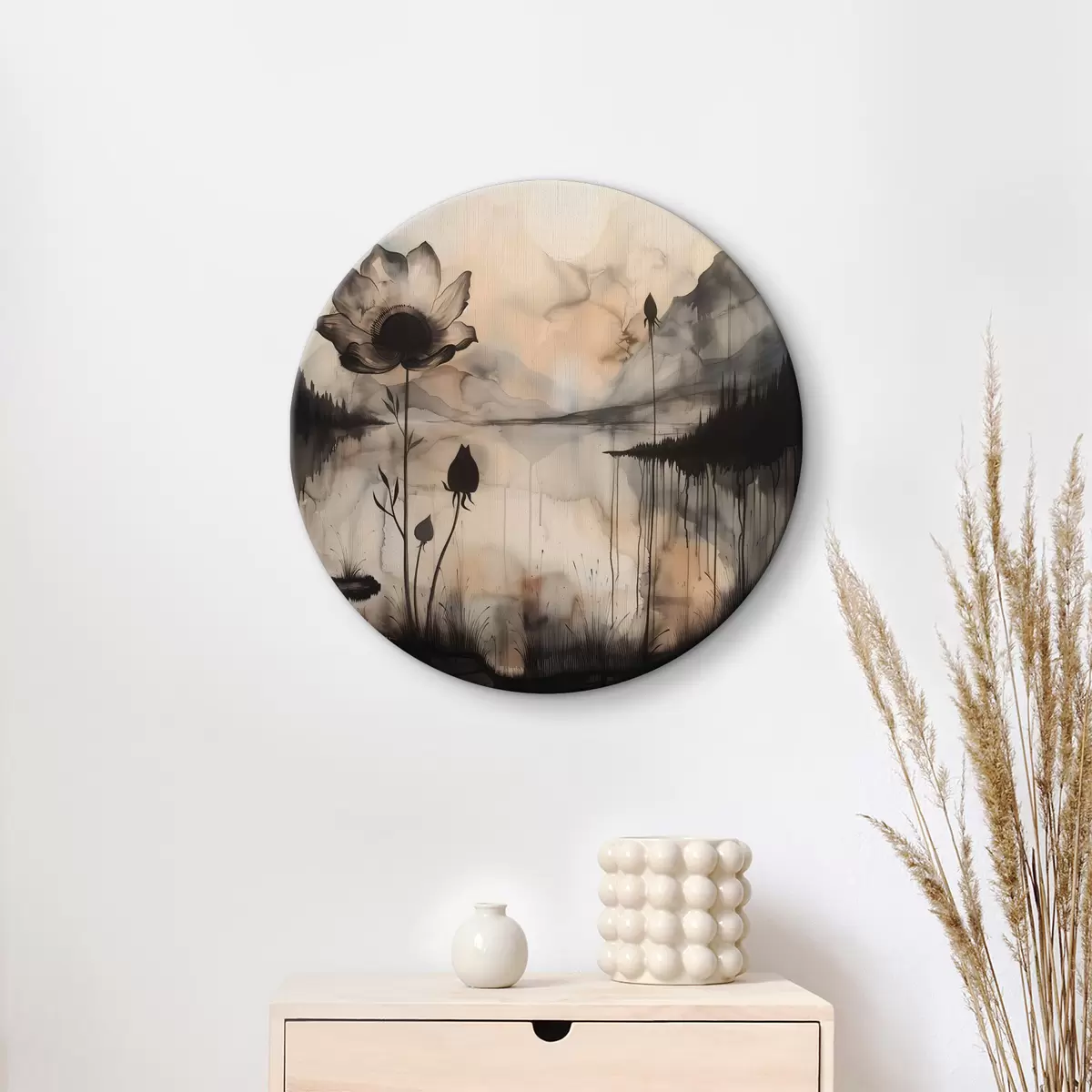 Tableaux rondes Peinture d'une fleur et d'un lac Nr r38161