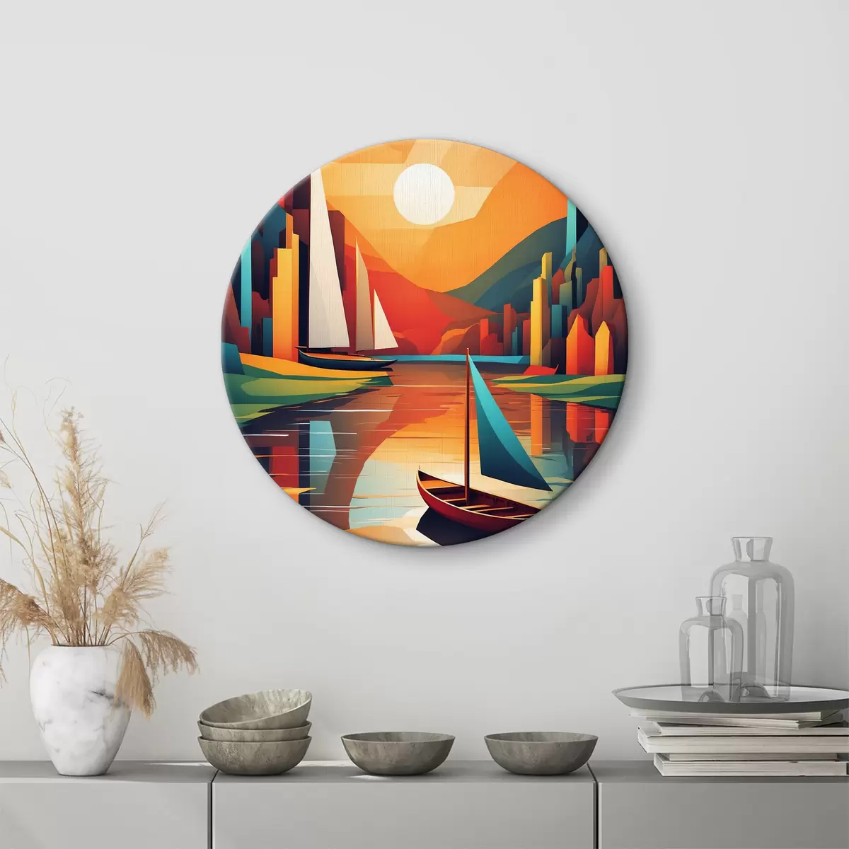 Tableaux rondes Bateau sur la rivière. Graphique vectoriel Nr r38179